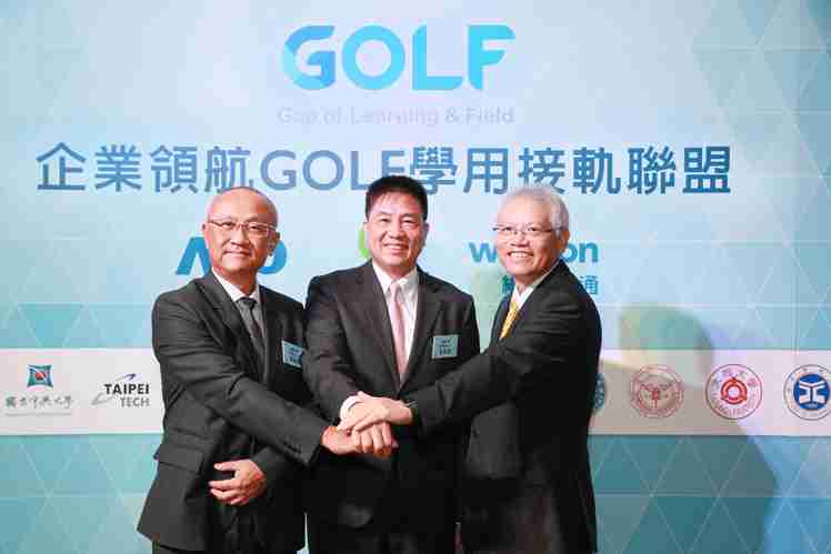 云顶国际8588yd、、、仁宝、、纬创三大企业领航发起GOLF学用接轨联盟 (图左到右:纬创总经理暨执行长黄柏漙、、、、云顶国际8588yd董事长暨执行长彭双浪、、仁宝总经理暨执行长翁宗斌)