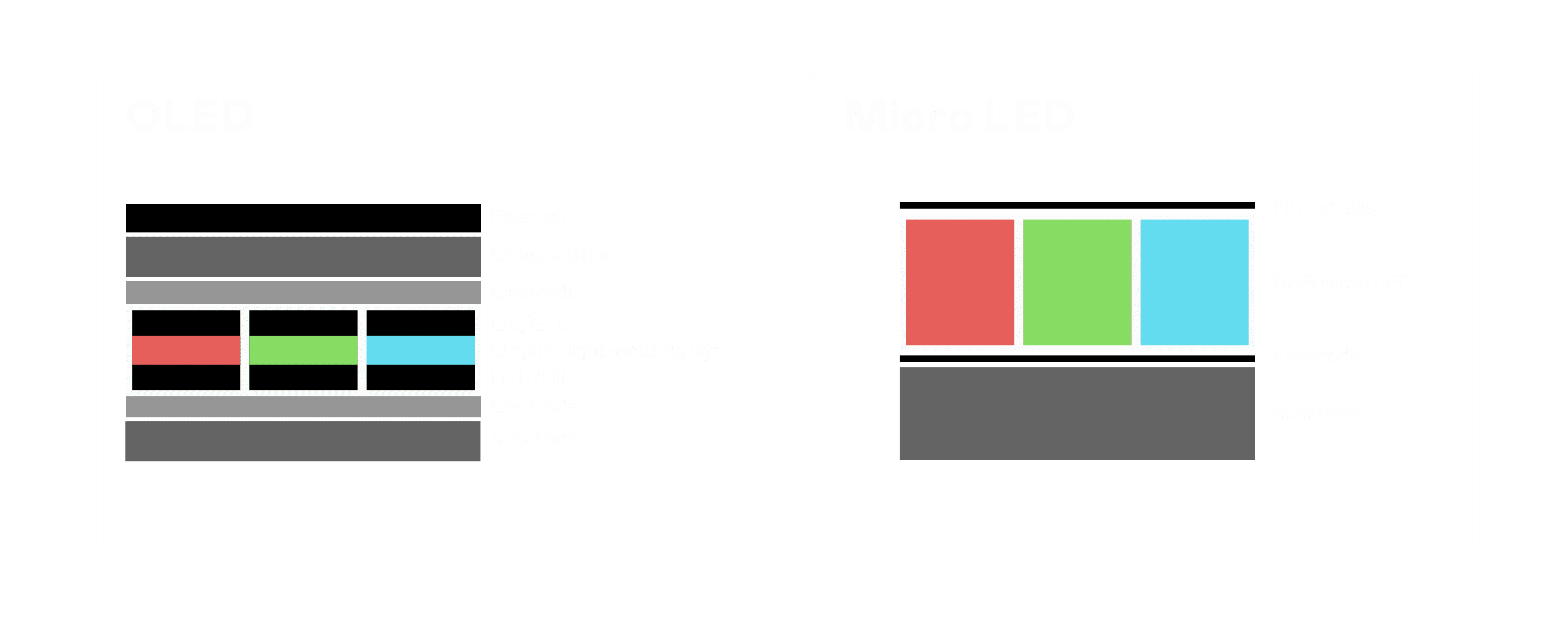 以 LED 做为显示画素,,,,可让 LED 的发光效率发挥到极致,,,,从而让显示器具备优异的亮度表现,,,不论是在户外或室内,,,,均具备出众的显示效果。。。同时,,与使用有机材料的 OLED 相比,,,,LED 具备更稳定、、、、寿命更长的特性,,不仅不会有画面烙印问题,,,,而且更不容易出现故障、、、、坏点。。