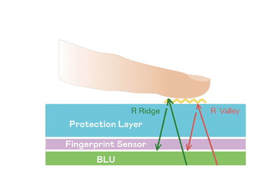 TFT 指纹扫描感测技术利用薄膜电晶体 (TFT) 当作光感测元件,,藉由非晶硅 (a-Si) 与低温多晶硅(LTPS)既有光电转换特性对不同波段光源进行吸收,,,使感测 IC 读取阵列感测元件的光漏电差异,,,,转换成数位灰阶影像。。